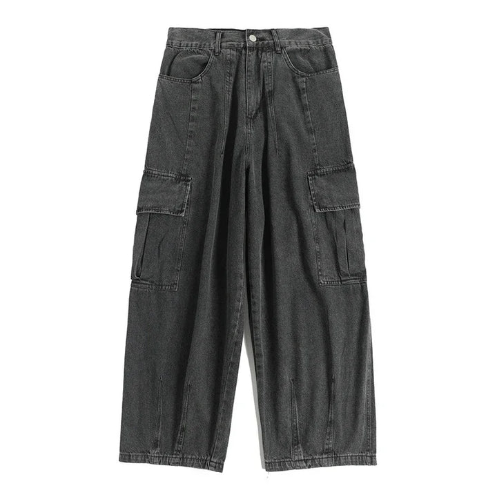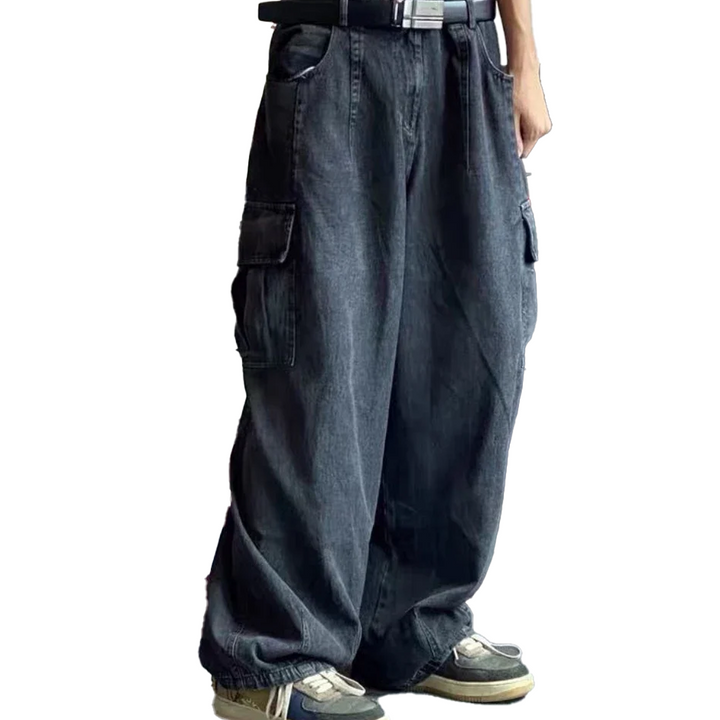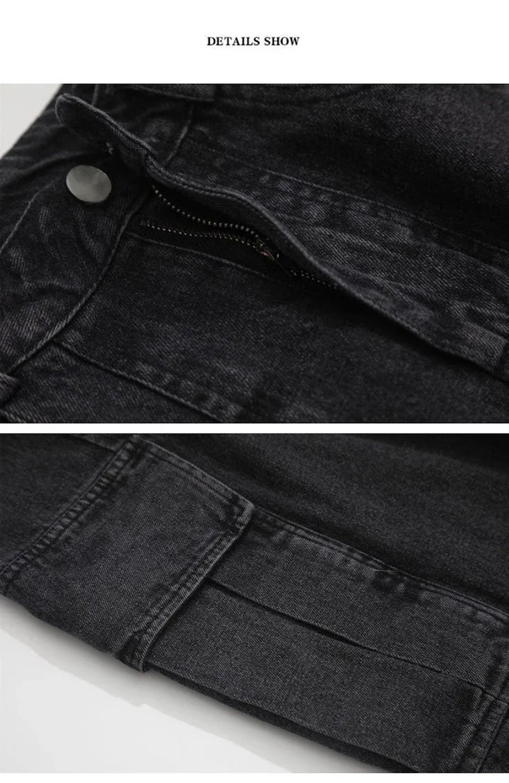 Graphic Footy Oversized Black Baggy Denim Cargo Jeans – Korean Streetwear Style