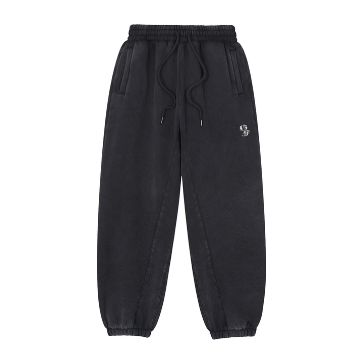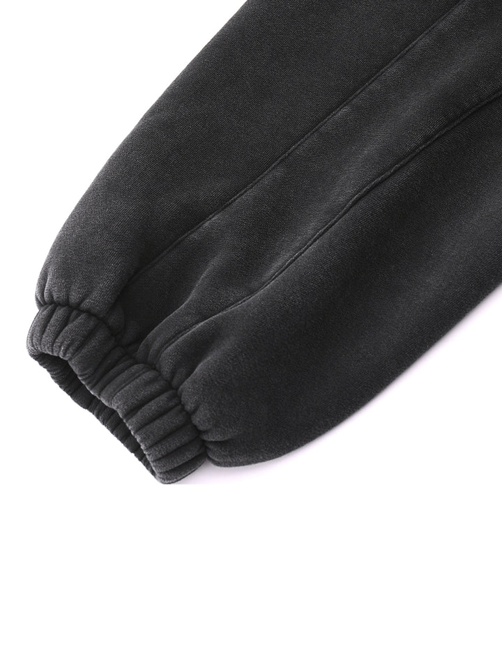 These washed black joggers combine comfort and streetwear edge with a relaxed mid-waist fit and heavyweight cotton-poly blend construction. The vintage-inspired finish and clean embroidered logo make them a versatile go-to for everyday wear. A thick, durable fabric (355 g/m²) provides structure without sacrificing flexibility, while the adjustable drawstring waist ensures a personalized fit. Great for school, casual days out, or layering in all seasons—autumn, spring, summer, and mild winter.