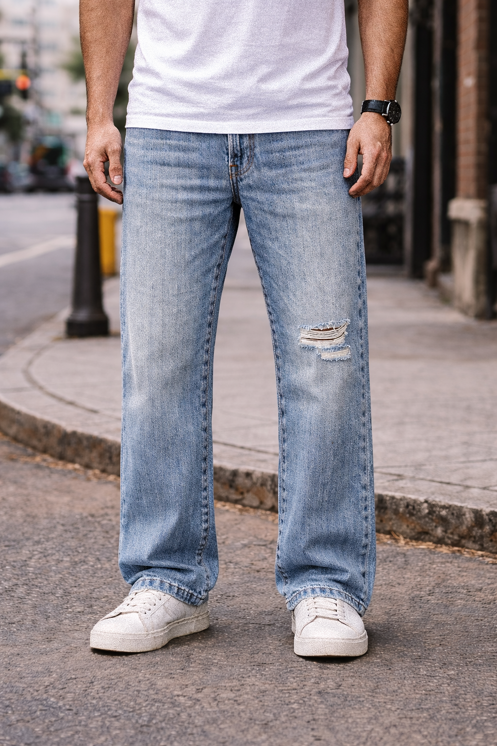 Designed for everyday wear with a timeless, street-ready edge, the RK0051 Vintage Wash Denim Jeans blend comfort, durability, and authentic character. Crafted from a premium cotton-rich denim, these jeans feature a relaxed wide-leg silhouette and a mid-waist fit, delivering an effortless vintage look that works from casual days to nights out.