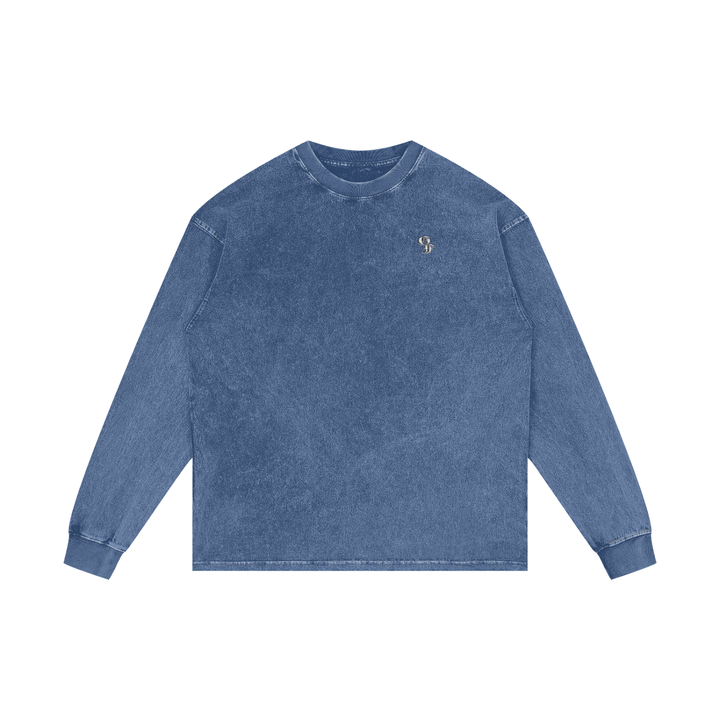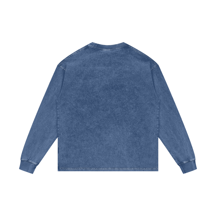 Vintage Acid Wash Oversize Graphic Footy Long Sleeve T-Shirt - 250 GSM