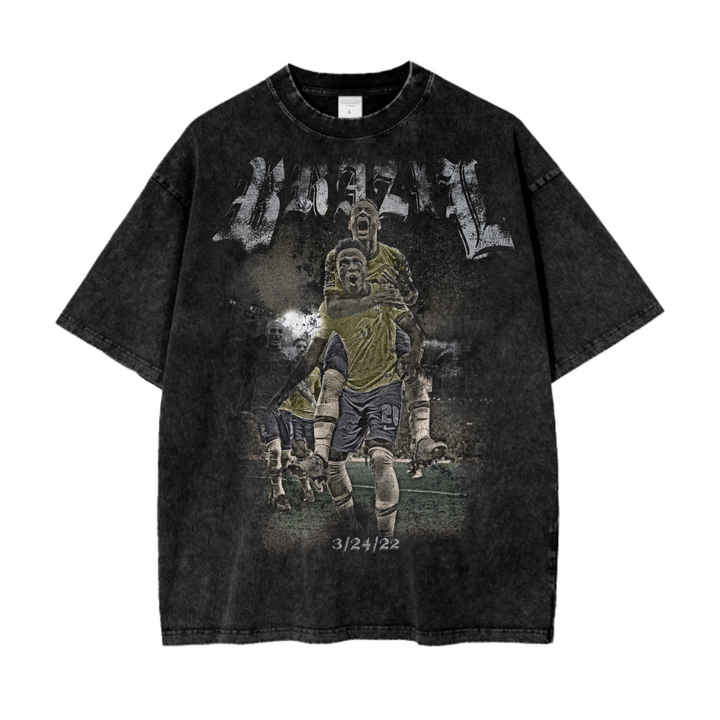 Vintage Brazil Football Soccer Oversize Acid Washed T-Shirt