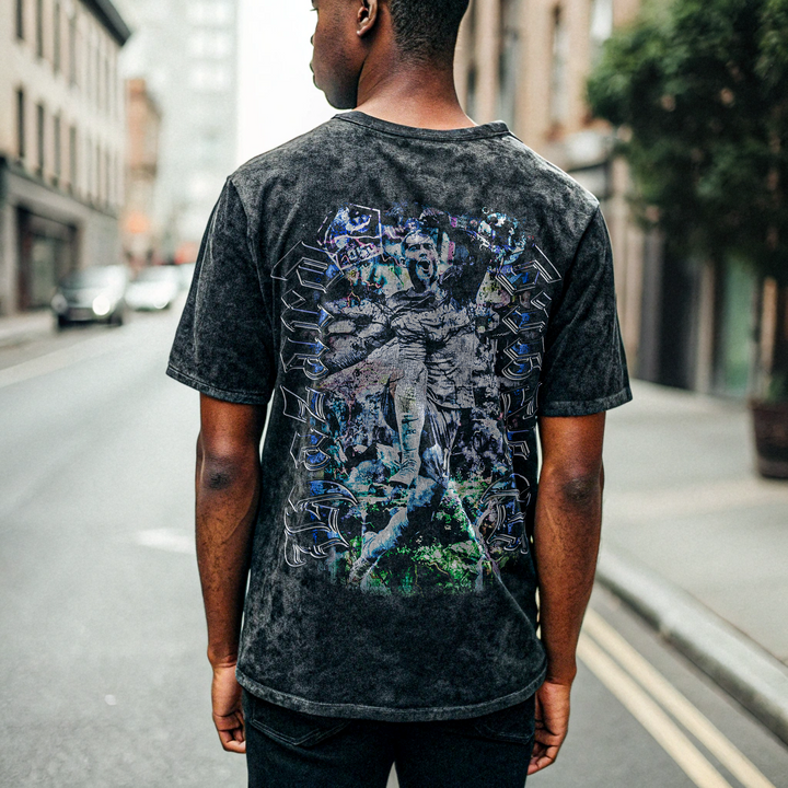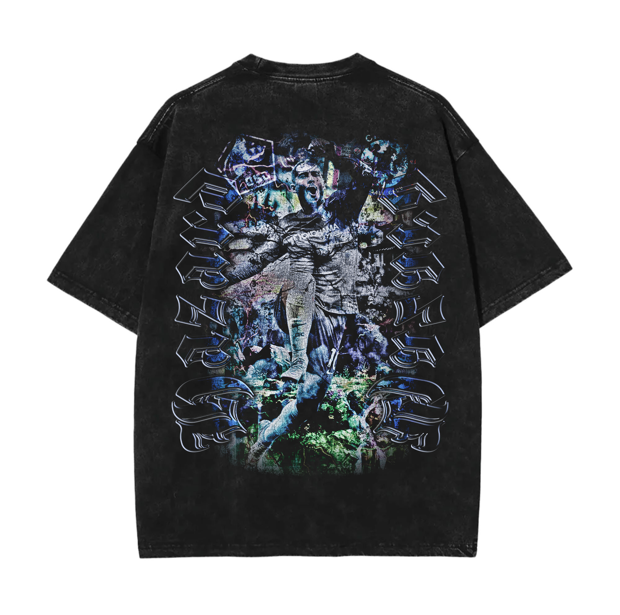 Effortlessly vintage and street-ready, our oversized acid wash football tees blend pure cotton comfort with bold graphic flair. Designed for unisex wear and built from 100% cotton with a moderate weight and slight stretch, each shirt features a drop-shoulder fit, large front print, and signature snow-washed finish. Perfect for casual days, outdoor hangs, or post-game style—this tee is your go-to for relaxed summer vibes. Due to our unique wash process, slight variations make every piece one of a kind.