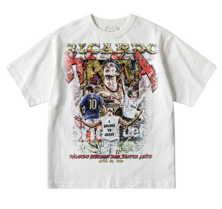 This Kaká graphic T-shirt celebrates one of football’s most elegant and influential midfielders, capturing his brilliance through a layered collage of iconic moments from his legendary career. The design highlights Kaká’s grace, vision, and goal-scoring power, blending imagery from his peak years with bold typography and vintage-inspired textures. From his iconic No. 10 performances to his calm, commanding presence on the pitch, the artwork reflects a player defined by intelligence, humility, and world-class quality. Made for fans who appreciate football artistry as much as greatness, this tee is a tribute to a true modern legend.