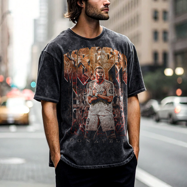 Vintage Kylian Mbappe Snow Washed Oversized Cotton T-Shirt