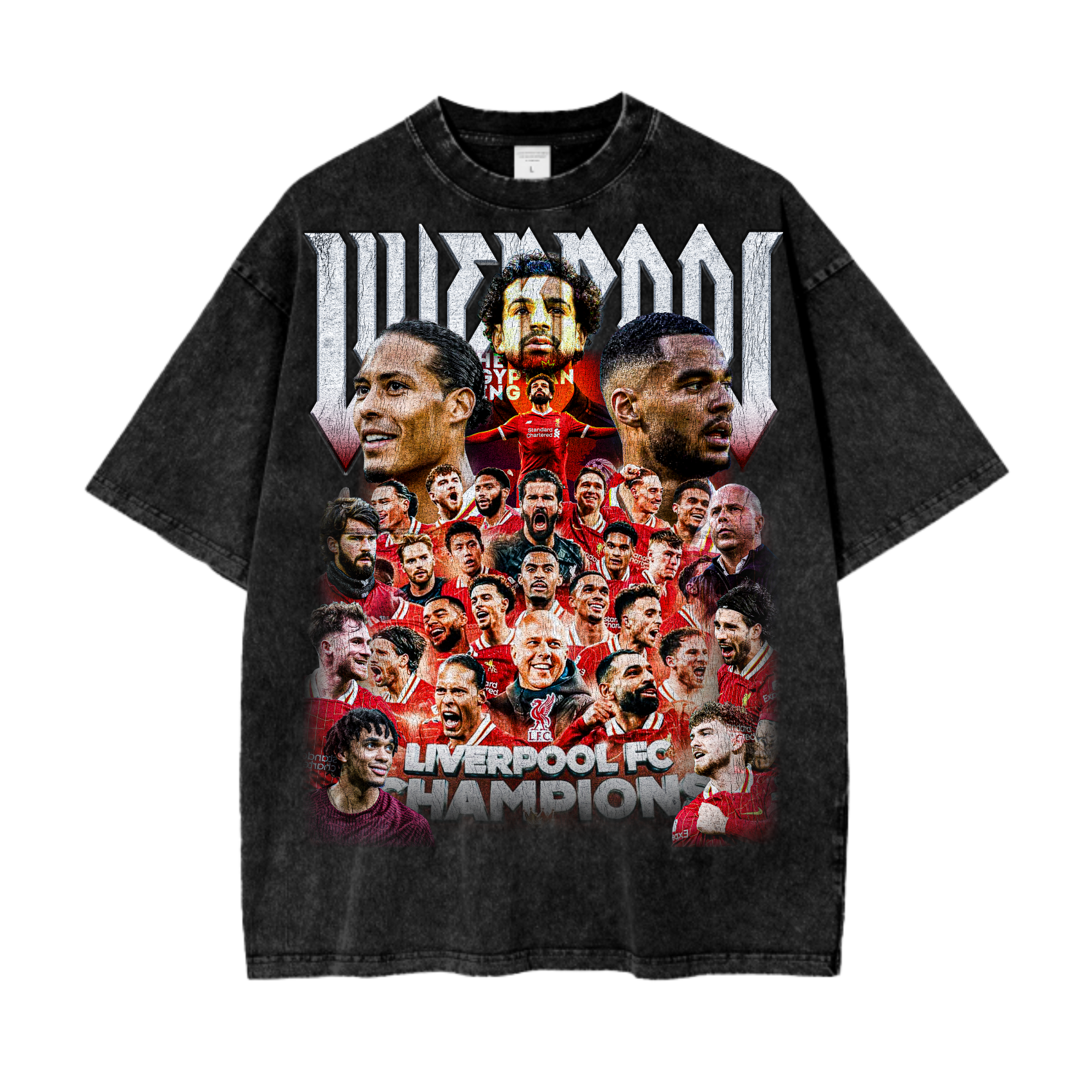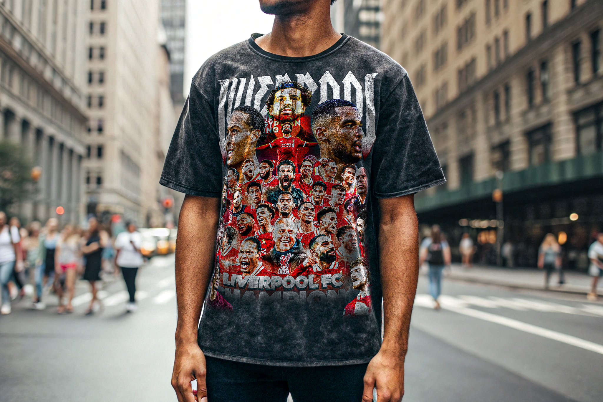 Vintage Liverpool FC Premier League Champions 24/25 Acid Wash Oversize T-Shirt - 250 GSM