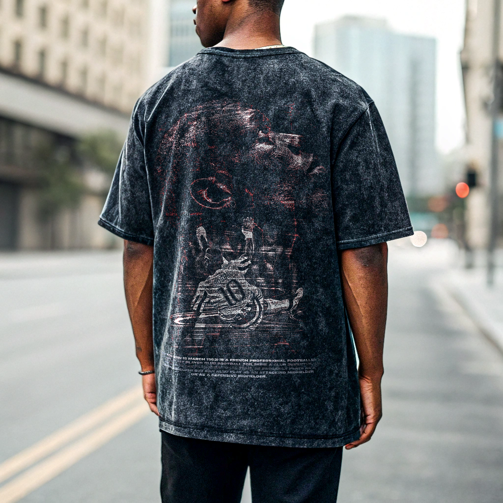 Effortlessly vintage and street-ready, our oversized acid wash football tees blend pure cotton comfort with bold graphic flair. Designed for unisex wear and built from 100% cotton with a moderate weight and slight stretch, each shirt features a drop-shoulder fit, large front print, and signature snow-washed finish. Perfect for casual days, outdoor hangs, or post-game style—this tee is your go-to for relaxed summer vibes. Due to our unique wash process, slight variations make every piece one of a kind.