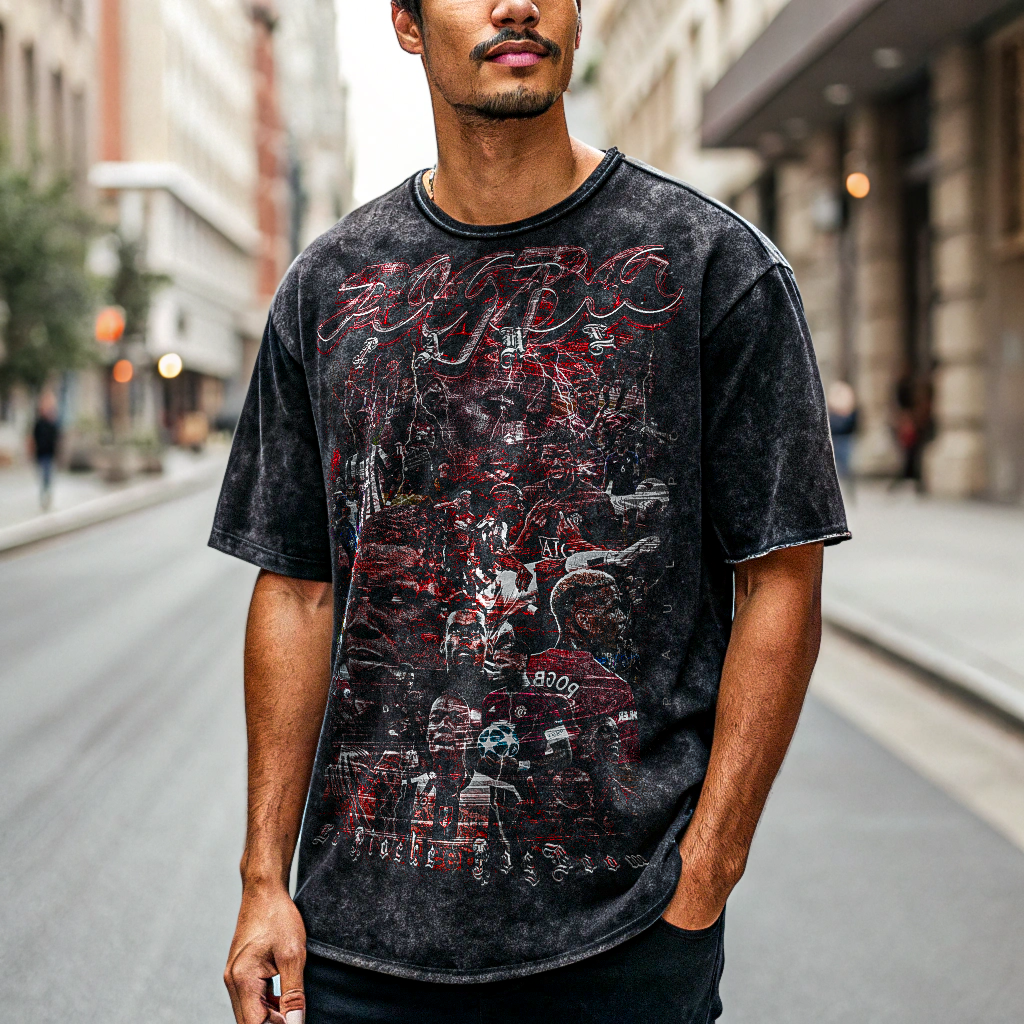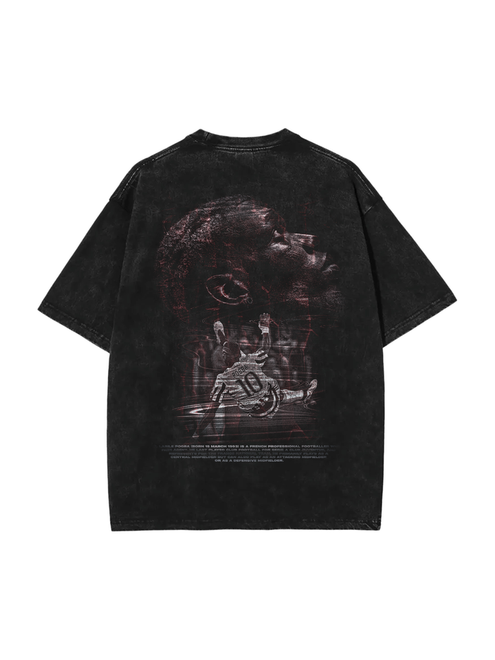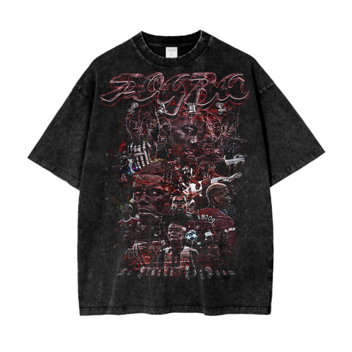 Crafted in a bold acid-wash black, this vintage-style Paul Pogba tee features an intense collage of his most iconic moments—celebrating the swagger, brilliance, and raw athleticism that define his game. From his signature celebrations to match-defining assists, the detailed print captures the essence of a player who combines flair with power like few others in football history. A true statement piece for fans of Pogba’s unapologetic style and unforgettable presence on the pitch.