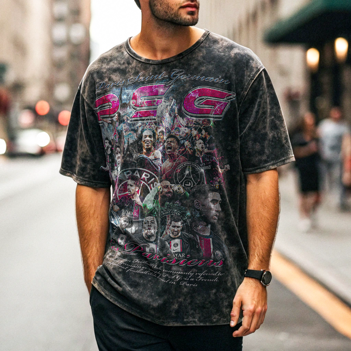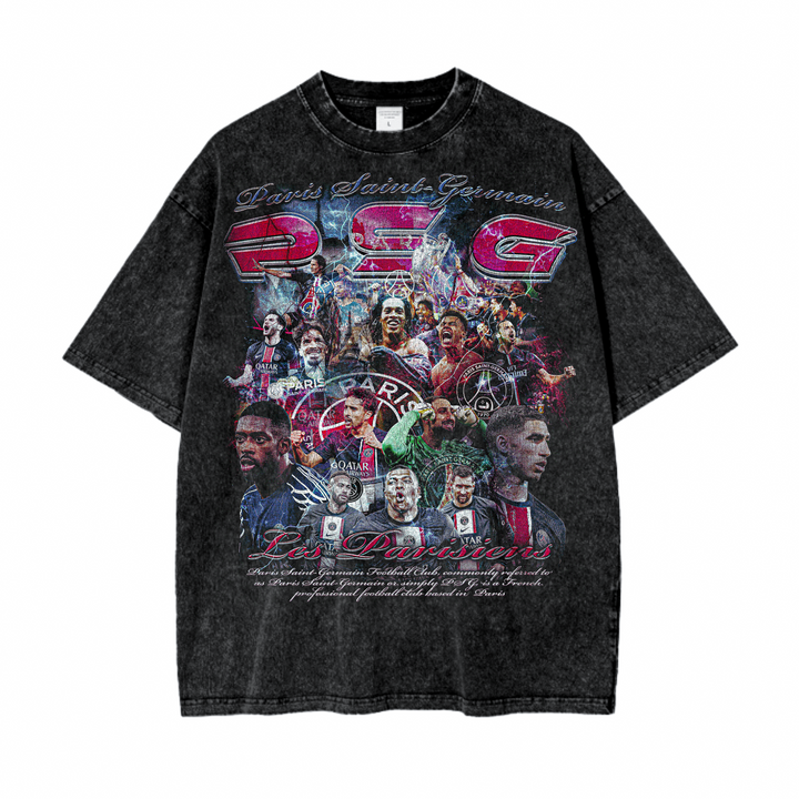 Vintage PSG Football Acid Wash Oversize T-Shirt - 250 GSM